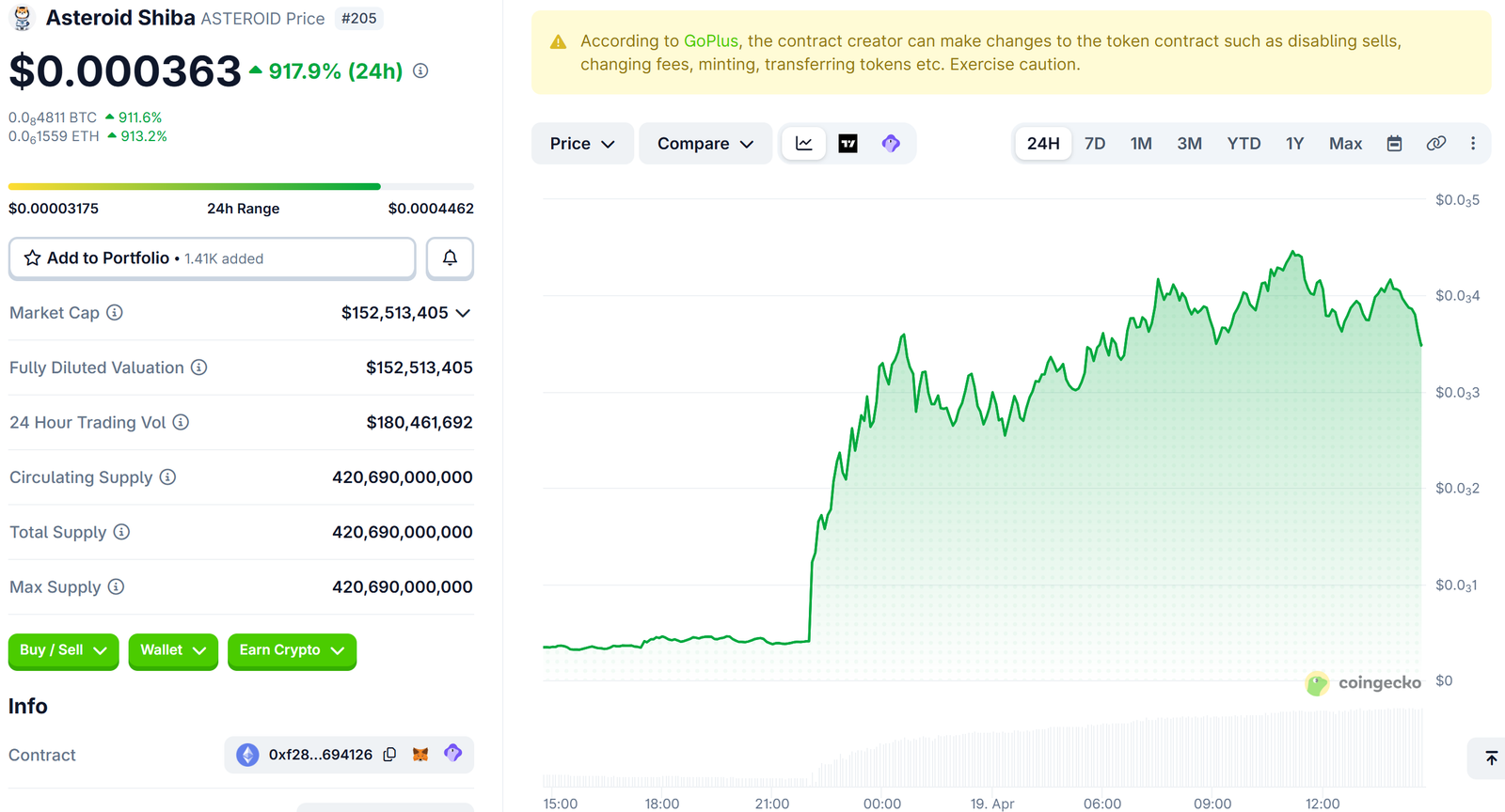The Asteroid Shiba price is up by almost 920%, and nearly 68,000% in the last week.